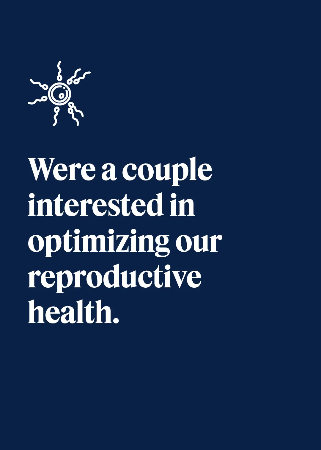 That is not what we do. We believe ALL men and women should know their reproductive health status before they ever start trying to conceive, and any possible issues should be comprehensively treated immediately. Our philosophy is grounded in treating the body holistically, increasing the probability of a successful natural pregnancy, and leaving no stone unturned in investigation.