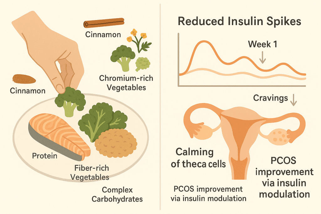 The science: This approach reduces both the amplitude and frequency of insulin spikes, which immediately begins calming the ovarian theca cells that produce excess androgens in PCOS.