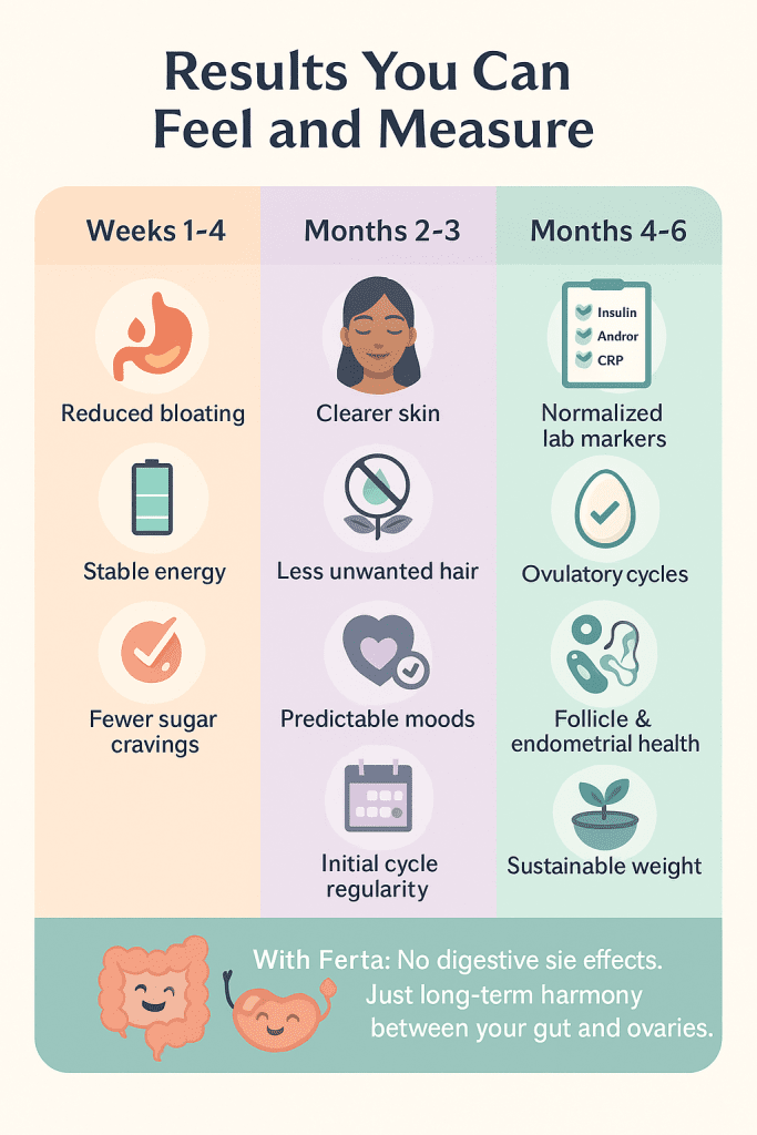Within days, many women notice reduced cravings and more stable energy. Within weeks, fasting insulin levels begin to normalize.